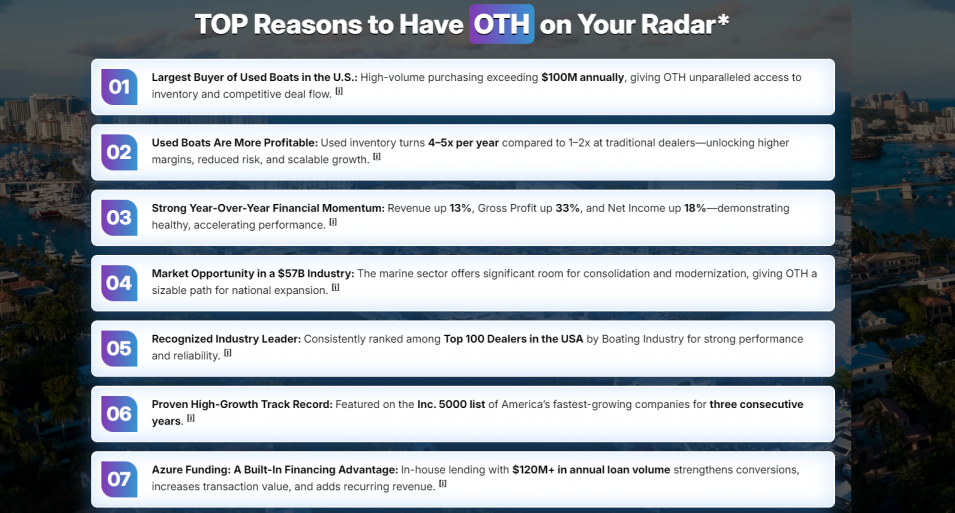 This expansion positions OTH to tap into a historically fragmented but high-value international market for pre-owned yachts.